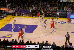火箭一個(gè)快反,剛剛老詹這趟算是白跑