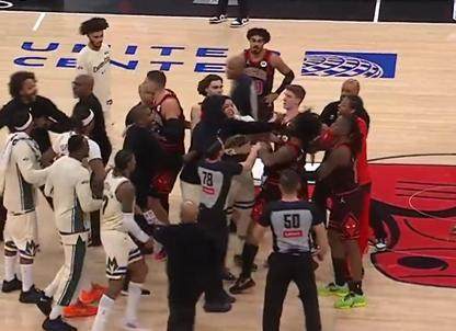 武切維奇率先上前與字母哥理論,懷特也緊隨其后表達不滿。眼看隊友被圍攻,雄鹿隊的波蒂斯迅速沖入場內(nèi)為字母哥解圍,并推搡了公牛球員,雙方隊員瞬間聚集,爆發(fā)了激烈的言語和肢體沖突,場面一度混亂。值得一提的是,在沖突升級時,引發(fā)事件的字母哥卻提前轉身離開了人群中心。