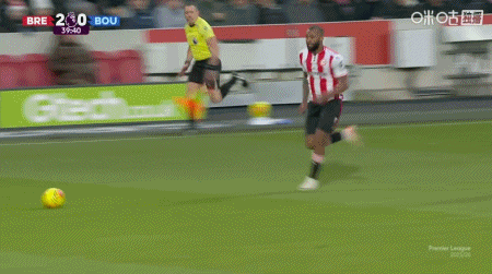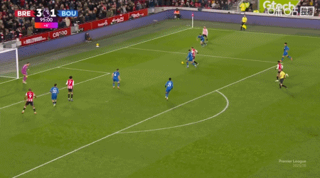 第90+6分鐘,沙德頭球破門完成帽子戲法,布倫特福德4-1伯恩茅斯