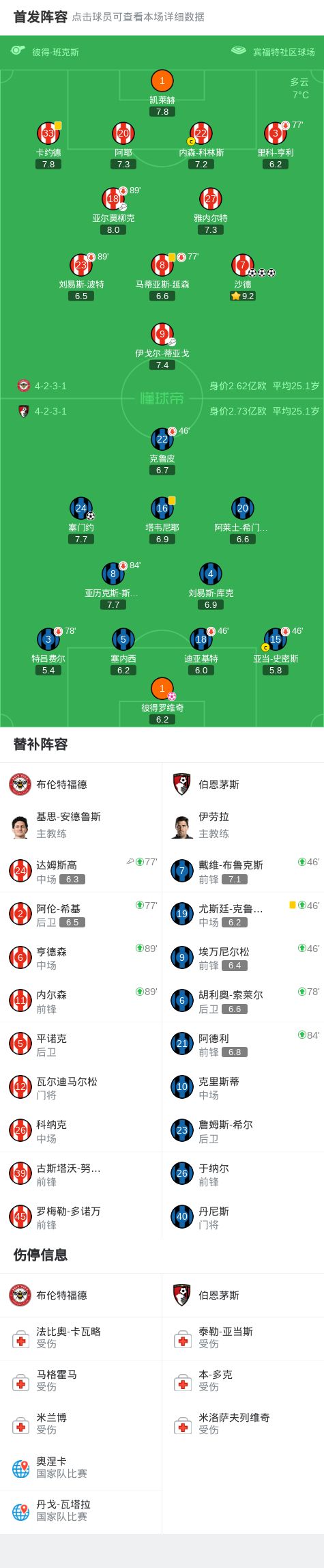 第7分鐘,蒂亞戈直塞,沙德扛開(kāi)防守低射破門,布倫特福德1-0伯恩茅斯