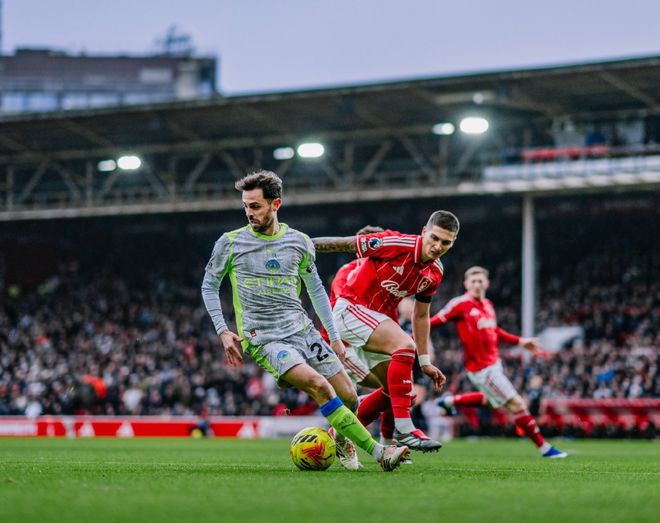 在穩(wěn)住后防的情況下,諾丁漢森林在第7分鐘,創(chuàng)造出了兩支球隊在上半場最有威脅的一次進攻,奧多伊左路擺脫防守球員后,直接45°傳中,可惜門前和后點包抄的隊友,都沒有能夠碰到皮球,錯失取得夢幻開局的絕佳機會。