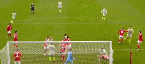 隨后森林隊大舉反撲,第54分鐘,森林抓住一次防線身后空間,由哈欽森推射扳平比分,森林1-1曼城,雙方又回到同一起跑線。