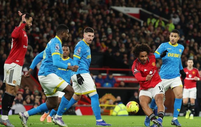 曼聯(lián)排出了4231陣型。謝什科頂在最前面。多古、齊爾克澤和庫尼亞的進攻組合聯(lián)袂出擊??ㄈ琢_和烏加特組成雙后腰。達洛特、艾登-海文、利桑德羅和盧克-肖4后衛(wèi)首發(fā)出戰(zhàn)。拉門斯擔任首發(fā)門將。布魯諾-費爾南德斯因傷缺陣。姆伯莫、迪亞洛和馬茲拉維去國家隊踢比賽缺席。