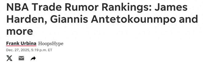 準備開搶!美媒更新交易市場5條大魚:數(shù)隊緊盯哈登+勇士看上濃眉