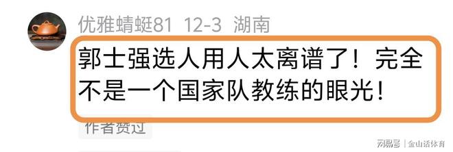 “說實話李祥波的確沒有國家隊的實力,郭士強這個選人令人詬病?!?;“郭士強選人用人太離譜了!完全不是一個國家隊教練的眼光!”;“明擺著就夾帶私貨,讓他到國家隊鍍一鍍金好在俱樂部要個好價錢!”;“李祥波竟然能兩次進國家隊,唉!我服了?!薄?/p>